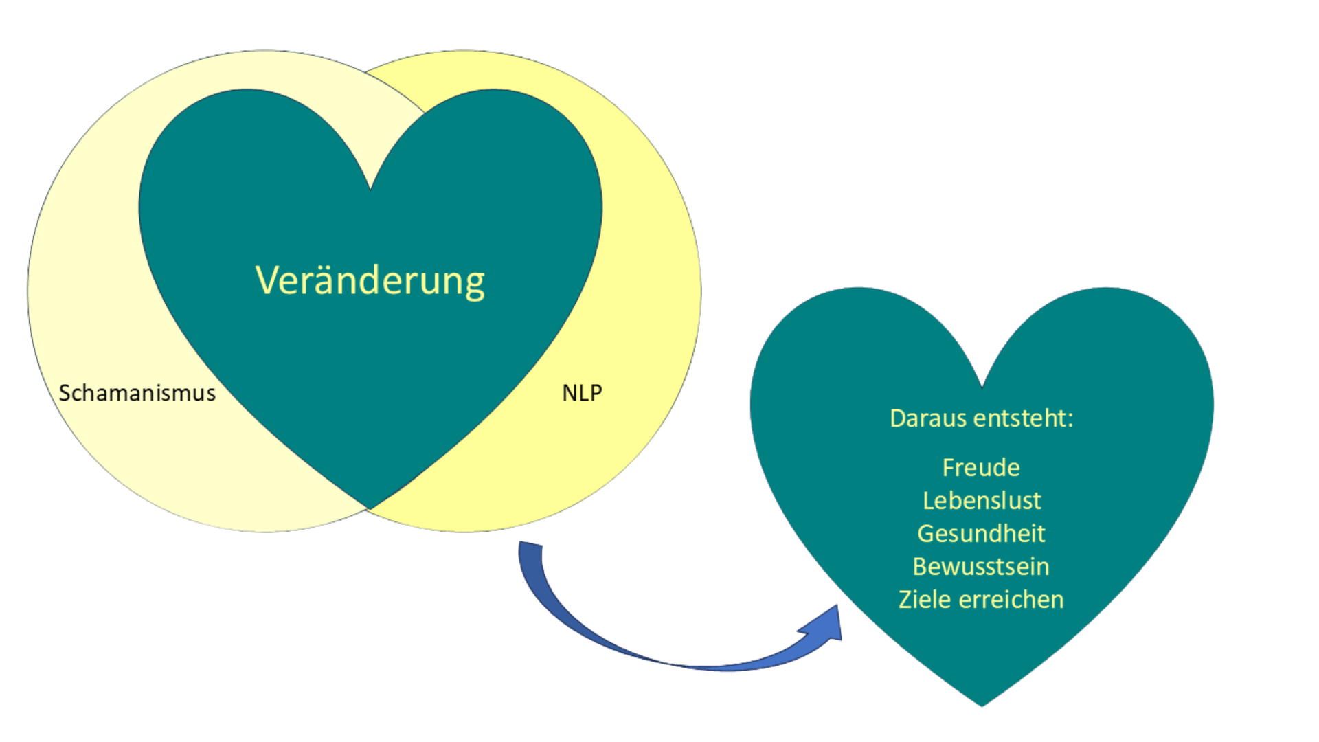 Sobald in meiner Arbeit die schamanischen Elemente mit meinen NLP-Fähigkeiten verschmelzen, entsteht Klarheit. Außerdem weitet sich das Blickfeld, Erkenntnisse entstehen, Heilungsprozesse werden angestoßen und Raum für Veränderungen wird frei.